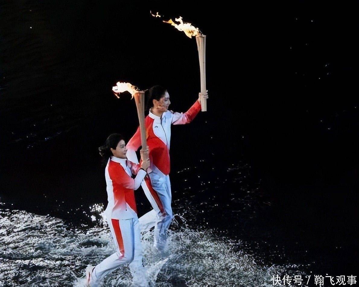 她身穿红色运动装,姿态挺拔,步伐稳健地完成接力任务,那一瞬间的从容气度,仿佛让人重见昔日跳台上的王者风范。